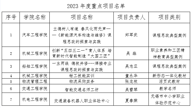 近日,无锡市教育局公布了无锡市职业教育质量提升攀登计划2023年度重点项目,我校11个项目入选:智能交通名师工坊认定为无锡市职业教育名师工坊;《立德树人有道 春风化雨无声—<新能源汽车构造与维修>》课程思政的探索与实践》和《一主两线 德技并修—焊接专业课程思政的探索与实践》两个项目认定为课程思政典型案例;《创新“五四三二一”育人体系 培育新时代智能制造“大国工匠”》被认定为职业素养和工匠精神教育典型案例;沈力辉、姚柯、陶建华、金学恒等4名同学认定为技能雏鹰;《钳工技能实训》认定为新形态一体化教材;《物流采购实务》被认定为活页式教材;交通装备机器人职业体验中心被认定为无锡市中小学职业体验示范中心。