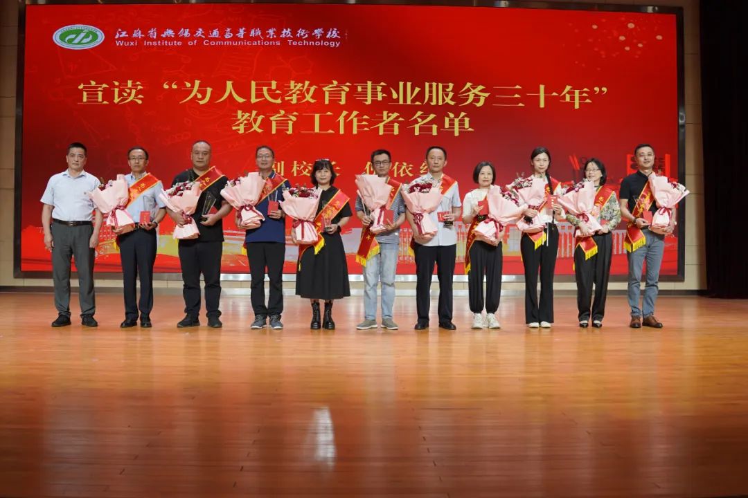 会上,校领导宣读了江苏省交通运输厅第39个教师节慰问信,向在岗位上辛勤耕耘30年的教师颁发证书。现场表彰了学校第五届“最美教师”,为获得全国职业院校技能竞赛奖项的选手颁奖。同时,举行新入职教师宣誓的仪式,并为退休教师代表献花。