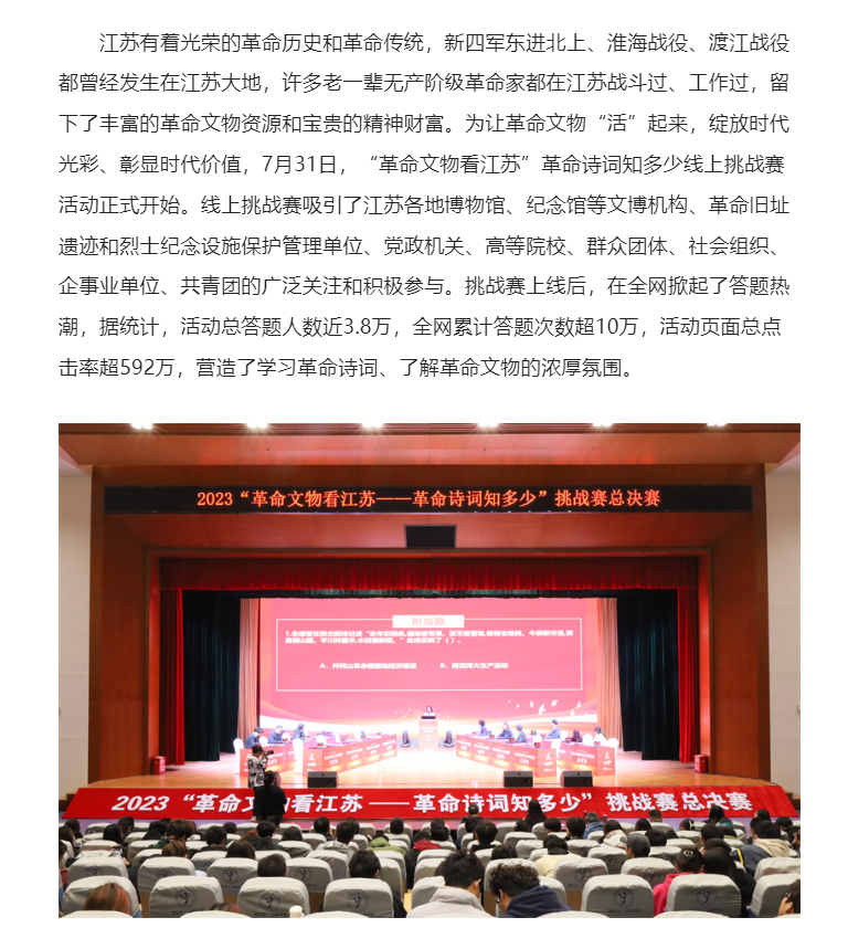 中江网:2023“革命文物看江苏”革命诗词知多少挑战赛总决赛圆满举办
