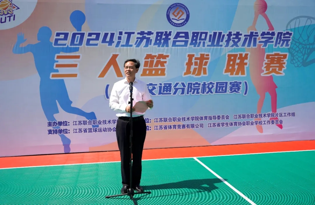 5月29日下午,2024江苏联合职业技术学院三人篮球联赛无锡交通分院校园赛在钱荣校区篮球场火热开赛。学校党委委员、副校长耿兴华,学校职能部门、二级院部负责人,各代表队领队、教练员、运动员以及部分师生参加活动。开幕式由学校党委委员、副校长吴雪琴主持。