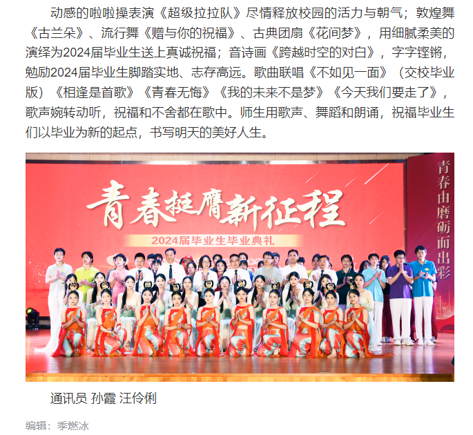交汇点:青春挺膺新征程 开云手机客户端举办2024届毕业生毕业典礼