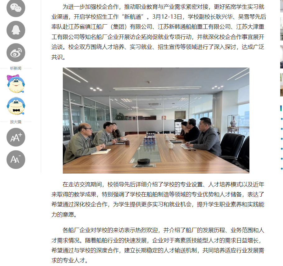 中江网:拓展学生就业渠道 开云手机客户端赴知名船厂“访企拓岗”