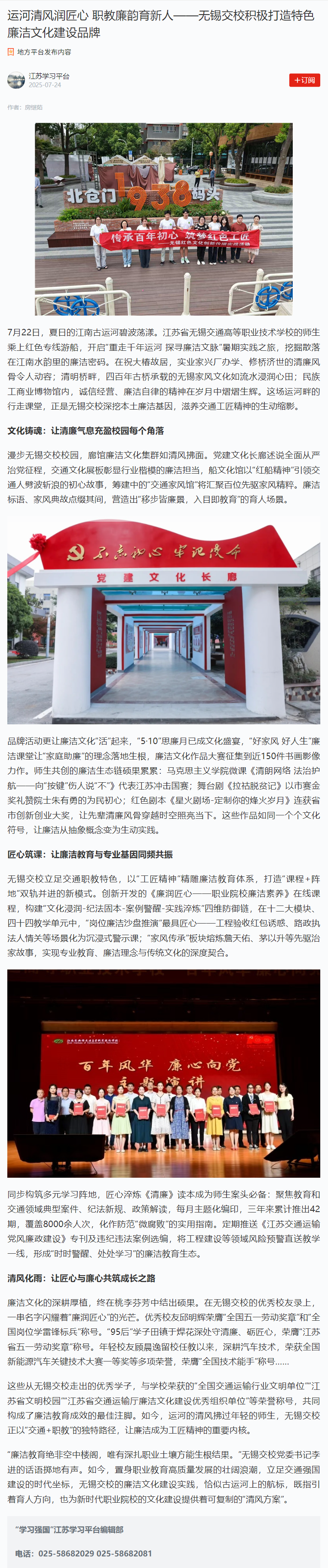 运河清风润匠心 职教廉韵育新人——无锡交校积极打造特色廉洁文化建设品牌 (xuexi.cn)