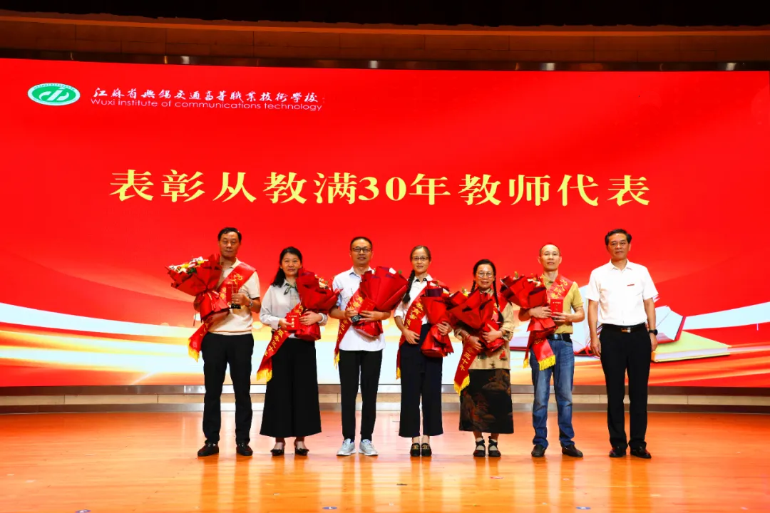 会上,校领导向在岗位上辛勤耕耘三十年的教师颁发荣誉证书并献花,现场表彰了2025年优秀教师、优秀教育工作者和2025年世界职业院校技能大赛获奖指导教师。同时,举行新入职教师宣誓的仪式。