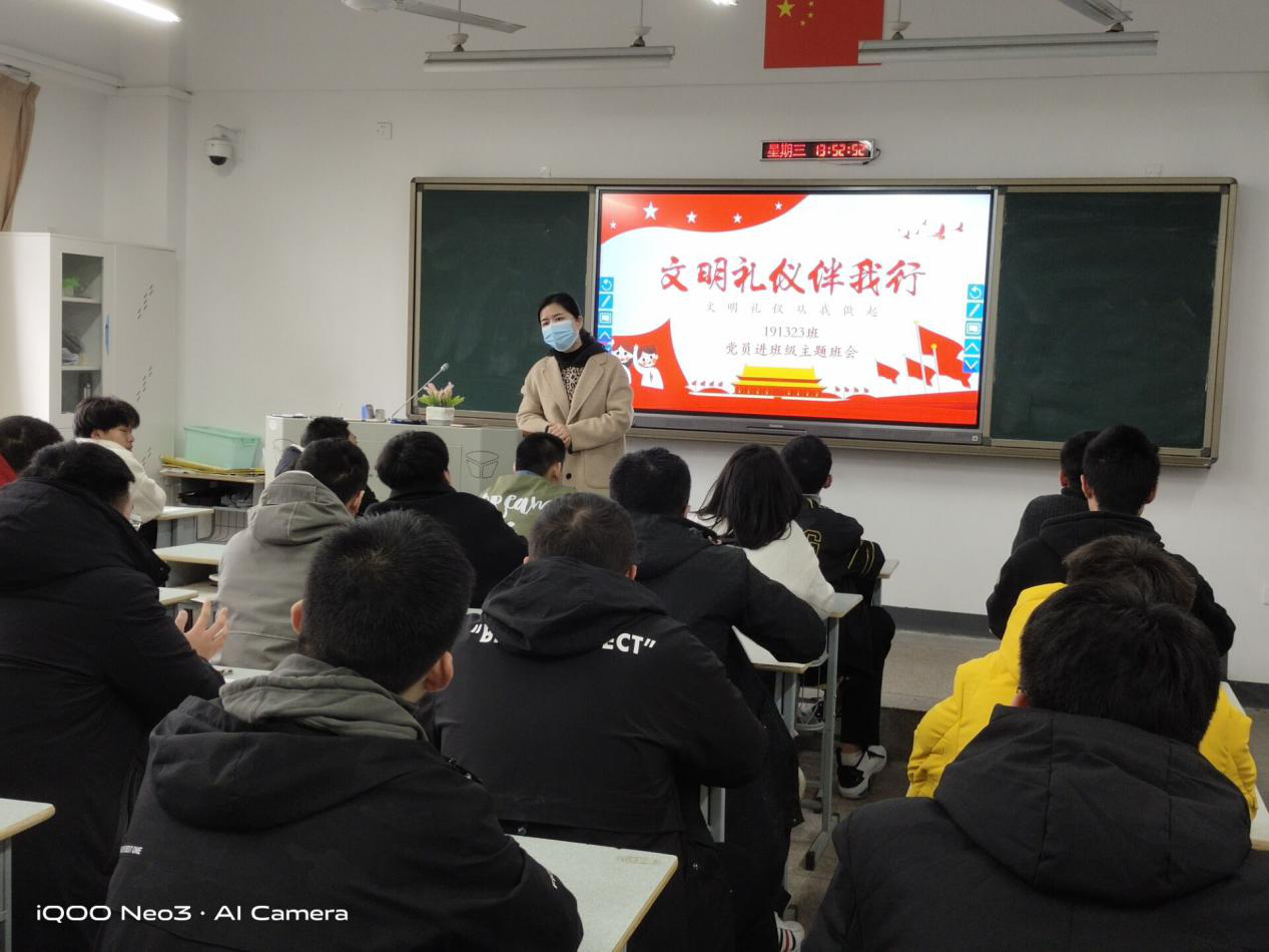 聂婷婷同志于12月2日下午在191323班展开“文明礼仪伴我行”党员进班级主题班会。本次班会,聂婷婷老师就文明礼仪的各种行为与同学们探讨,希望同学严格要求自己的一言一行,深刻理解文明礼仪的精髓,用于指导实际行动。
