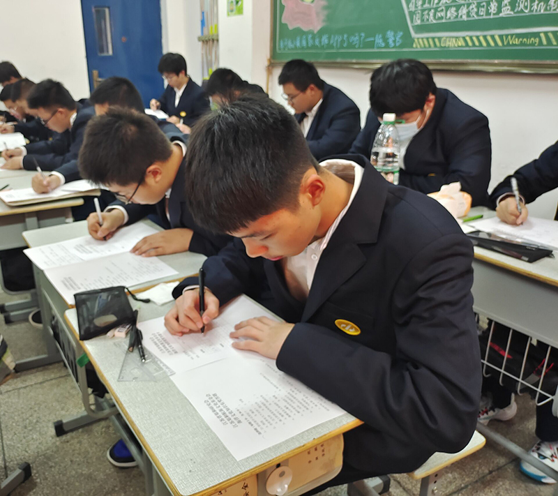 当日下午,机电工程学院组织学生整齐地穿着校服在教室进行答题。本次答题采取闭卷考试的形式,在整个过程中,学生们严格遵守纪律,深入思考,根据自己所学过的海洋知识认真答题,所有学生均在规定时间内完成了答题。