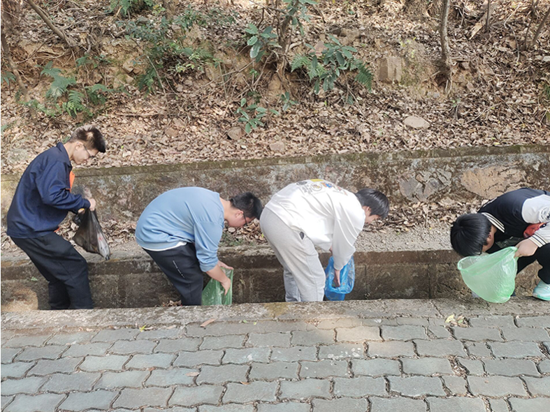 在活动中,40名志愿者同学捡拾丢弃在草丛、山路上的白色垃圾等杂物,大家不怕累不怕苦忙着捡垃圾,不放过每一个角落,所过之处都被清理得干干净净,并向过路的游客讲解共建生态环境、共享绿色未来的生活理念。