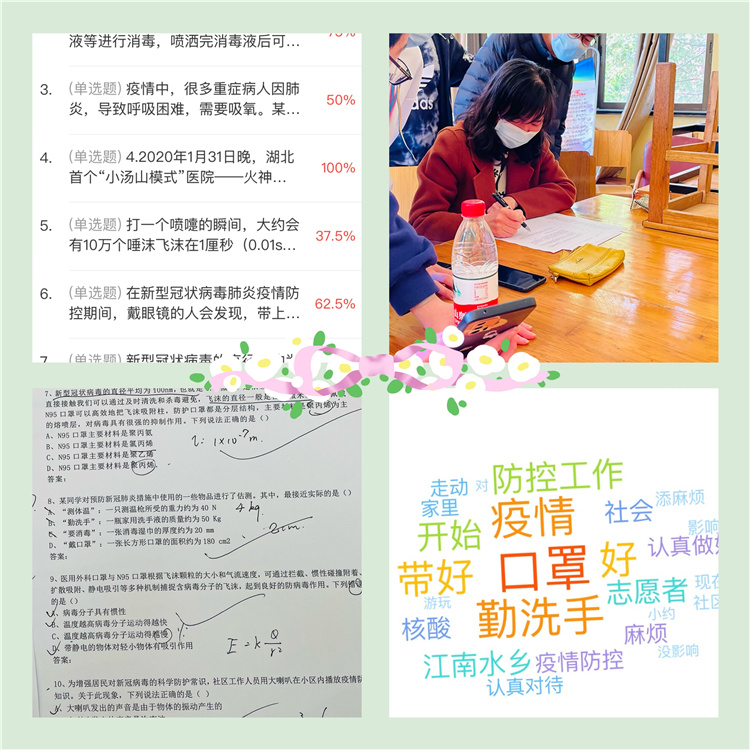 活动前,指导老师袁雪平老师广泛查阅资料,精心筛选疫情防控中与物理相关的案例,编辑成题目上传至学习通。活动中,袁老师首先明确本次活动的目的和形式,随后学生现场加入班课,独立完成测试并提交。通过测试成绩进行排名,评选出一、二等奖,并颁发纪念品。随后,师生结合测试中涉及的部分疑难问题,如戴口罩的必要性、红外线测温原理、负压实验室的优点等再次进入深入探讨。最后,大家分享活动心得,并就“作为学生如何做好疫情防控工作”“疫情给我带来的影响”等问题展开讨论。