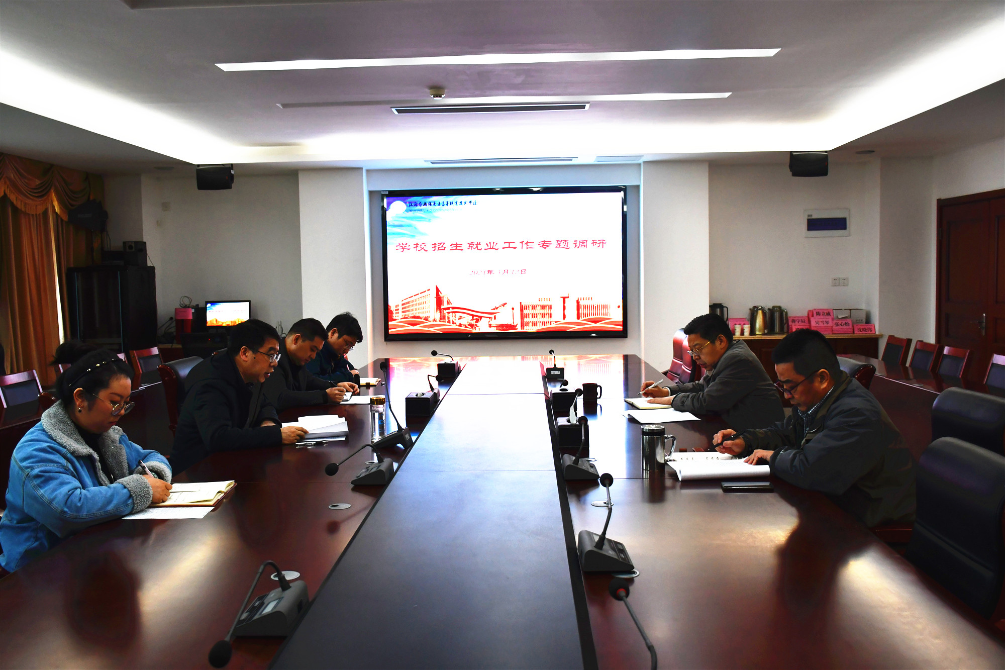 3月12日,学校党委书记、校长李虎带队赴招生就业处调研招生就业工作。招生就业处全体成员参加会议。会议由副校长倪依纯主持。