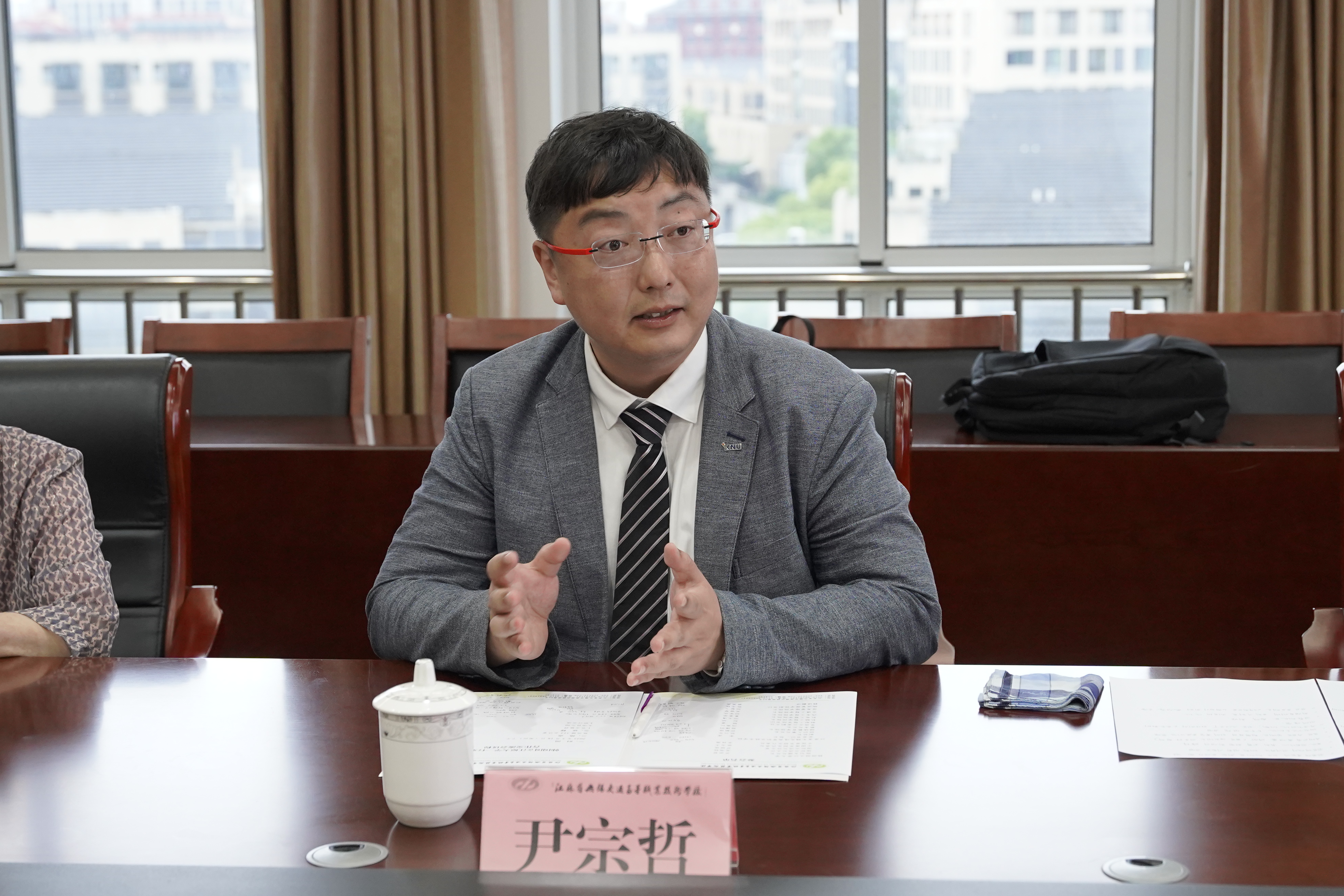 尹宗哲详细介绍了韩国国立江原大学的概况及国际交流项目。与会双方就两校开展教育交流,推进国际交流项目进行了探讨。