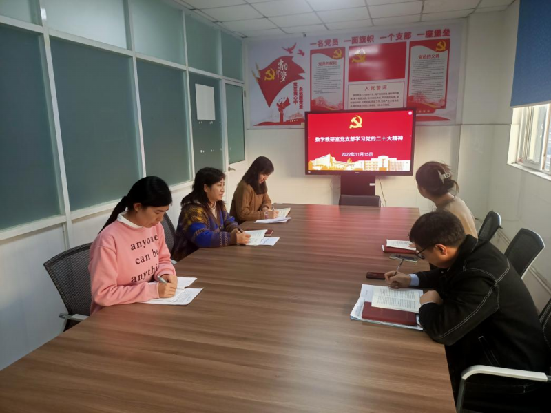 2022年11月15日下午,数学教研室党支部在基础部会议室组织了党的二十大精神专题学习会。基础教学部党总支组织委员袁雪平出席会议,全体党员参加会议。会议由数学教研室党支部书记杭红霞主持。