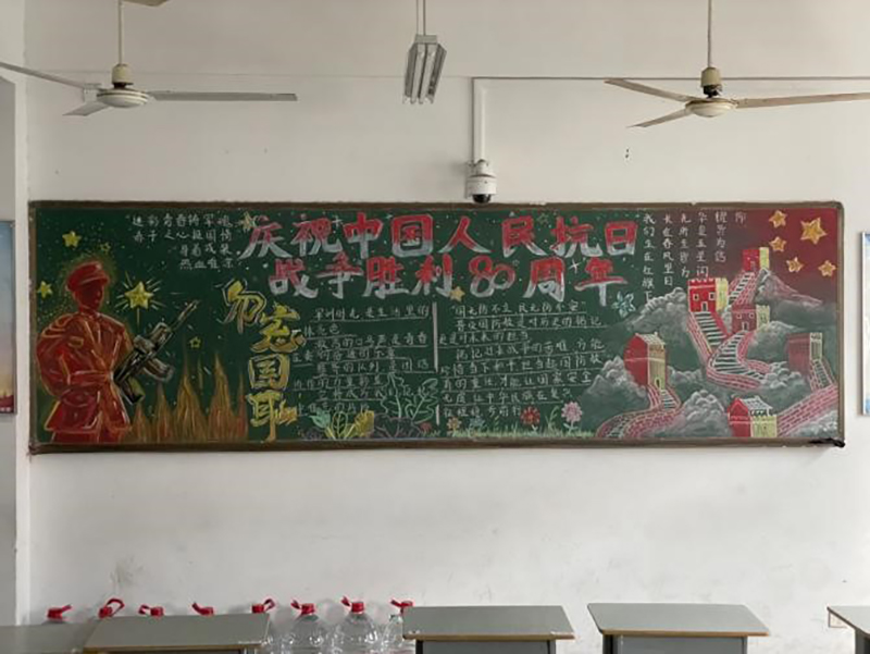 今日,开云手机客户端机电工程学院的25级新生教室内焕新出彩,一幅幅主题鲜明的黑板报凝聚了新生们的心血,以“庆祝中国人民抗日战争胜利80周年”为统一主题的视觉教育阵地正式亮相,成为校园内一道厚重而鲜活的红色风景线。