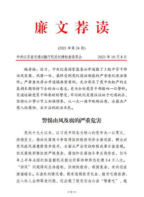 2021年廉文荐读第24期——警惕由风及腐的严重危害