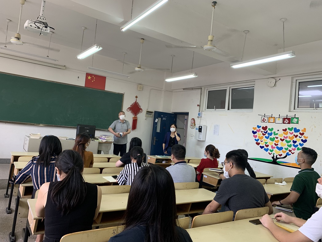 会后,根据学院新冠肺炎疫情处置办法和应急预案,由部分教师担任体温异常学生、班主任等不同角色,模拟学生上课时在教室出现身体异常情况的应急处置流程。