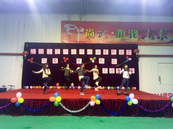 总结表彰大会结束后,伴随着深情动人的朗诵《中国梦》,迎新晚会拉开了序幕。小品《审贼》幽默搞笑,表演夸张,引得现场笑声不断;快舞让现场观众眼前一亮;吉他社表演新颖独特,现场气氛热烈。