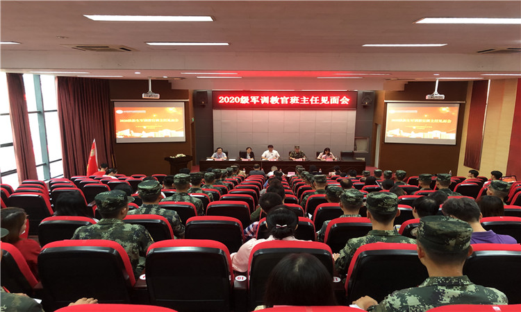 见面会上首先由冯处长宣读了2020级新生班主任和教官名单,读到名字的教官和班主任起立互相见面认识。会议的第二项议程由邢校长为承训军训团授旗。赵大队长代表承训教官做出表态,一定恪尽职守,确保安全,切实做好今年军训工作。